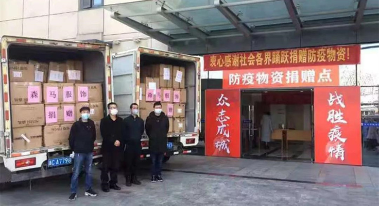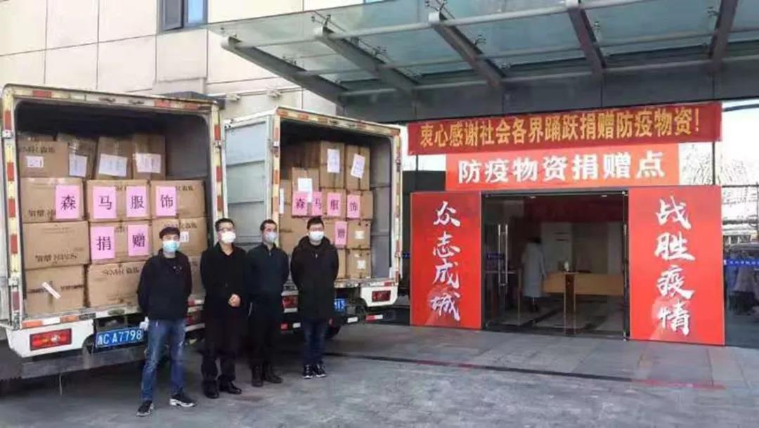 全国人大代表、森马集团有限公司董事长邱光和,带领公司高层迅速启动响应机制,对内积极部署疫情防控,对外协调资源、响应社会号召。1月28日,森马集团总部在得知武汉前线医院的医护人员急需一批羽绒服御寒后,立即安排武汉子公司从当地仓库调度1500件羽绒服,并在第一时间送至湖北省第三人民医院,以提供保障。1月29日,决定捐赠1000万元支援各地共同抗击疫情。次日成立捐赠实施小组和防疫工作小组,并安排和部署抗击疫情捐赠、各地园区开工前准备以及开工后防控等各项工作。截至2月6日,一周左右的时间,森马集团已经向武汉、温州、杭州、上海等城市奋战在阻击疫情一线的工作人员,捐赠了约1.2万件羽绒服,把温暖送到坚守在前线的抗疫英雄,让他们抵御倒春寒。