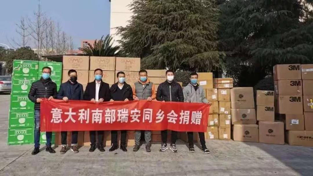 市人大代表王金龙,在物资紧缺的关键时期,紧急联系意大利南部瑞安同乡会,在意大利紧急采购了一批专业医疗物资,其中FFP2口罩14000只、一次性外科口罩10000只、3M口罩660只、防护服570套、体温计107个等,通过空运以最快捷方式送达瑞安。之后又主动联系俄罗斯瑞安商会收集防疫物资。2月3日以来,亲自将捐助物资运送至市卫健局、莘塍街道办事处、上望街道办事处、陶山镇、市交警大队、莘塍派出所、上望派出所、塘下派出所、陶山派出所、塘下综合执法管理局等十多个单位,给基层防疫一线人员送来温暖和信心。