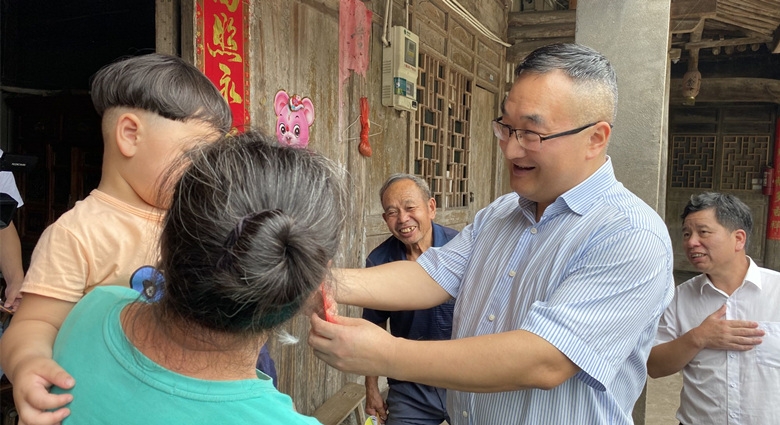 7月3日,民宗侨外工委支部在市人大常委会副主任张洪国的带领下,赴文成县开展结对帮扶和缅怀先烈活动。张洪国一行首先来到文成县黄坦镇培头民族村,在培头村支部书记、市人大民宗侨外委员会委员钟松下的陪同下,看望了结对帮扶对象、四岁的少数民族贫困女童钟雨潼和抚养她的爷爷奶奶,送上牛奶和慰问金,送上关心和祝福,鼓励她们树立信心,相信在大家的帮助下生活条件会得到改善。随后,大家来到文成县西坑畲族镇鳌里村周定烈士纪念馆,了解先贤故事,缅怀先烈精神。周定烈士(1897—1927)出身殷实之家,深具家国情怀,是文成县第一个中国共产党员,曾参加南昌起义,省委特派员,组建青田第一个党支部,在领导浙东暴动中不幸牺牲、以身殉国。参观之后,大家都深受感动,抚今忆昔,深感不忘初心、牢记使命的重要性。