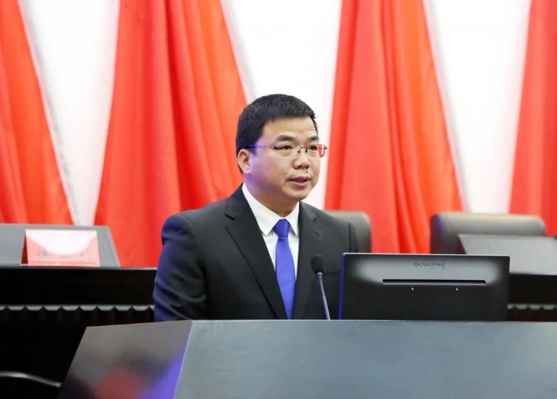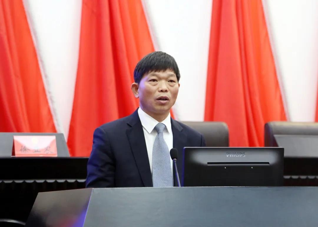 ▲市人大常委会副主任、大会筹备处主任仇杨均作关于市十三届人大六次会议筹备工作情况的报告